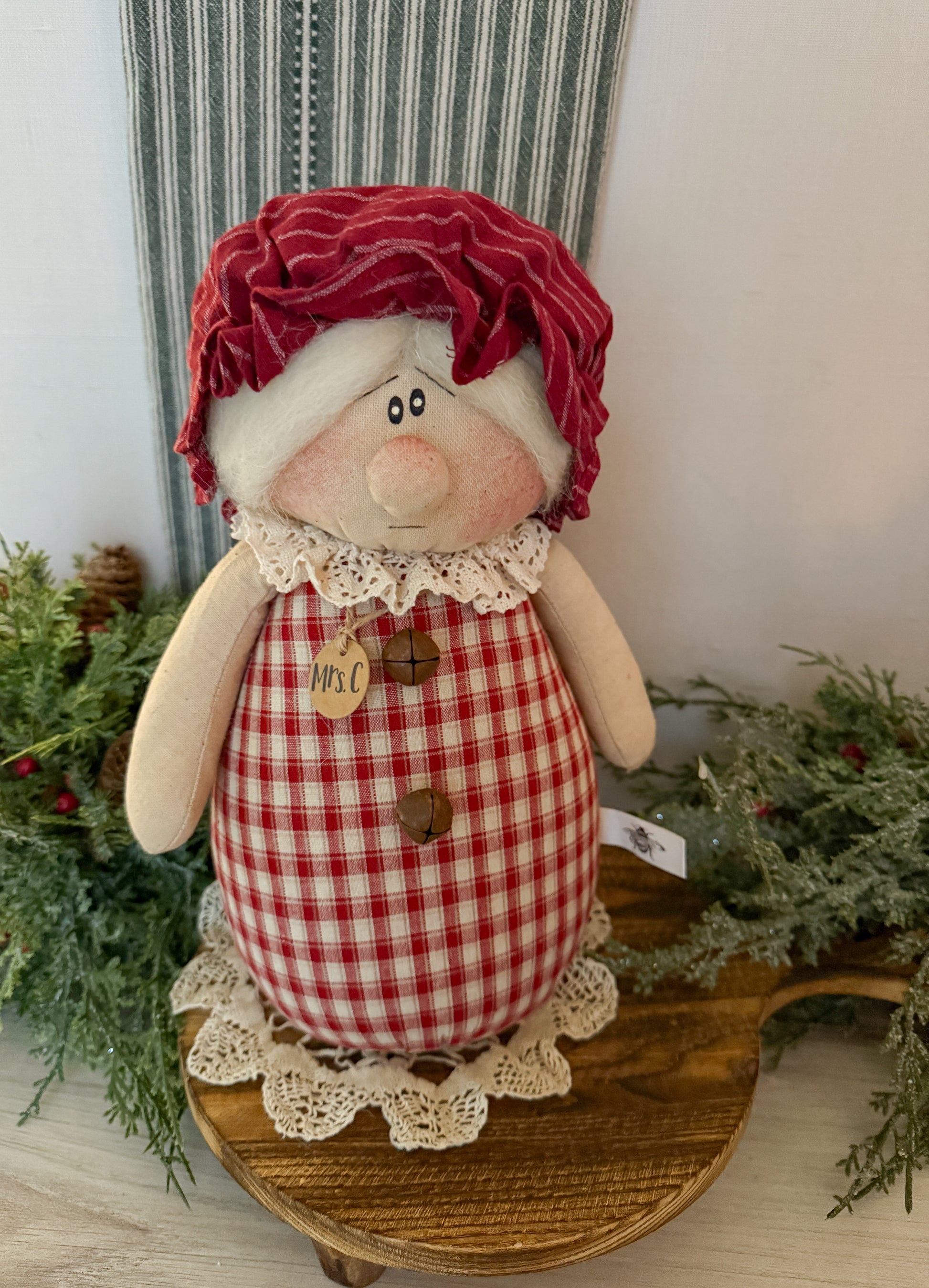 She will fit right in with your holiday display. It will give off a fun and cozy winter look to your tiered tray, shelf, riser, coffee bar, stand, windowsill or mantle!